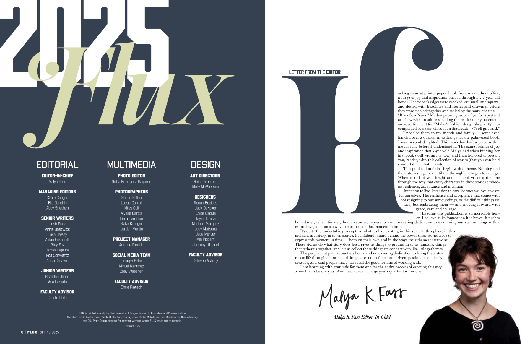 I was hired alongside Molly McPherson to co-art direct the 2025 edition of the University of Oregon’s capstone publication, Flux. We led a team of 10 designers and proudly put this magazine together in just seven weeks.